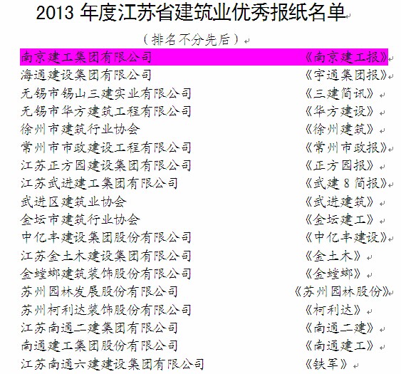 南京建工集團(tuán)企業(yè)報(bào)、網(wǎng)站獲江蘇省建筑業(yè)優(yōu)秀報(bào)紙、優(yōu)秀網(wǎng)站殊榮