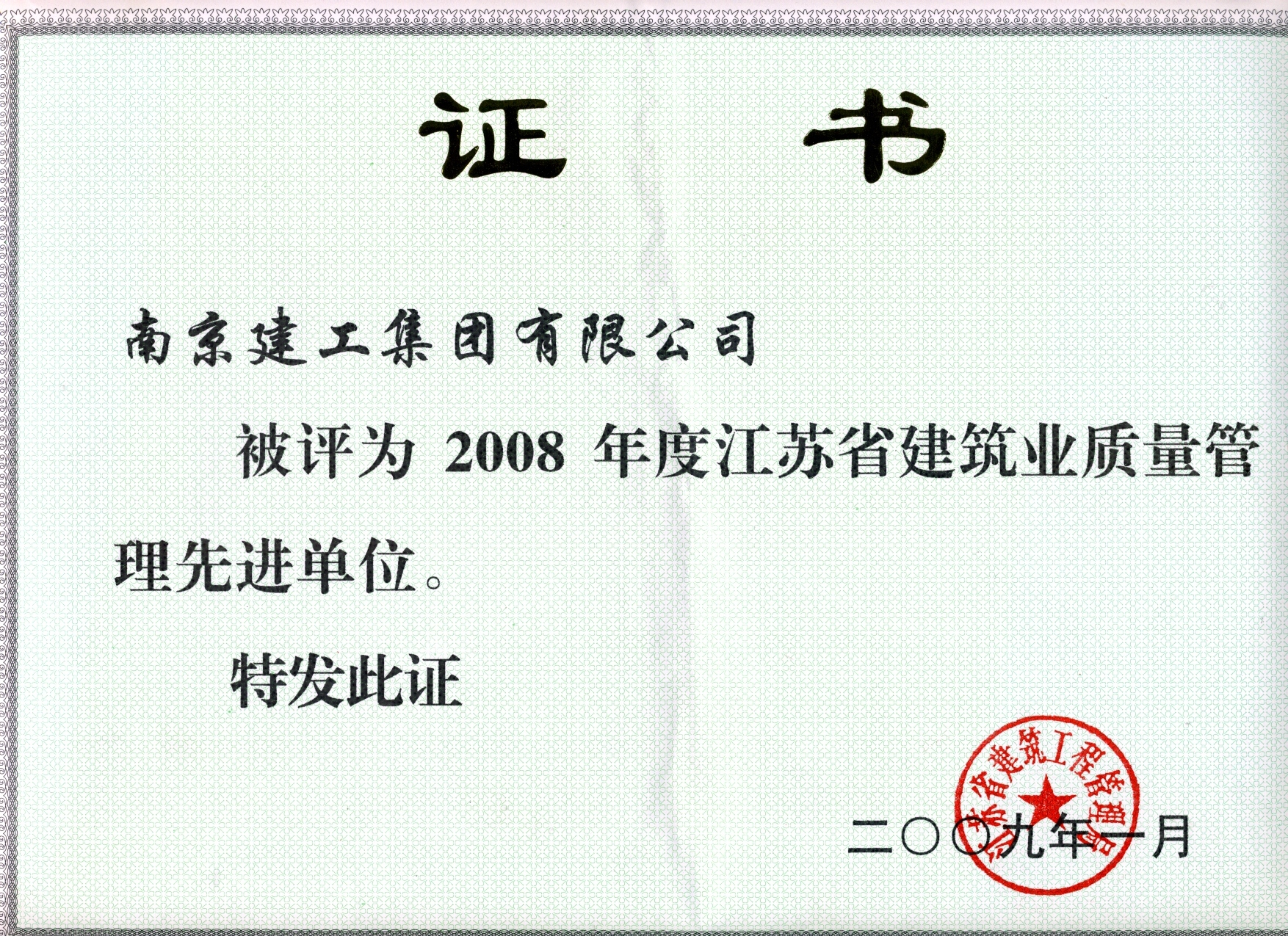 ? 南京建工集團榮獲江蘇省建筑業(yè)“質(zhì)量管理先進單位”稱號