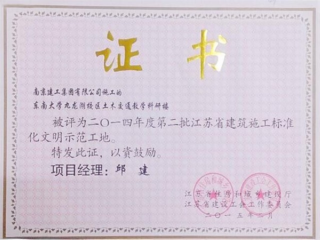 近日,由南京建工集團(tuán)第六工程公司承建的東南大學(xué)九龍湖校區(qū)土木交通教學(xué)科研樓工程項(xiàng)目、愛(ài)濤尚逸華府住宅工程項(xiàng)目和高淳雅居樂(lè)花園一期12#、18#、19#樓、商鋪及地下室工程項(xiàng)目被評(píng)為2014年度第二批“江蘇省建筑施工標(biāo)準(zhǔn)化文明示范工地”。 |